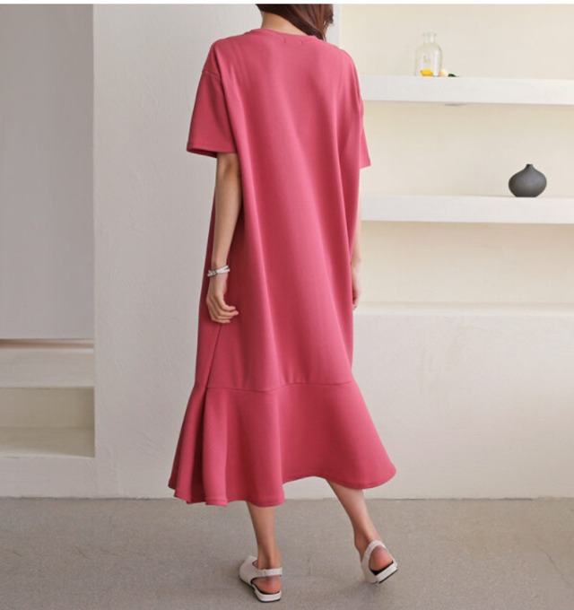 ■商品特徴 裾グレー ・裾の配色切替えが目を引くワンピースです。 ・さらっとしたカットソー地にリラックス感のあるシルエットで仕上げました。・シンプルですがお袖のフレアデザインがさりげないアクセントに。・1枚ではもちろん、デニムやレギンスとレイヤードするのもオススメです。 ◆2021春夏新作 ◆レディース ◇ワンピース 【素材・成分】 ポリエステル 95%、スパン 5% 【生産地】 韓国