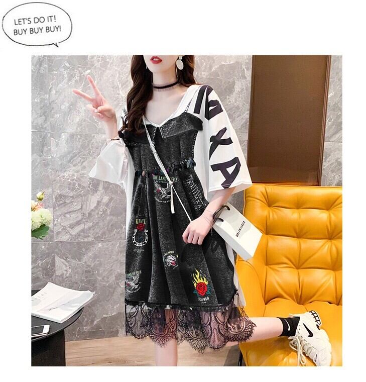 大きいサイズ春夏 韓国 レディース ファッション Tシャツワンピース LL-4L