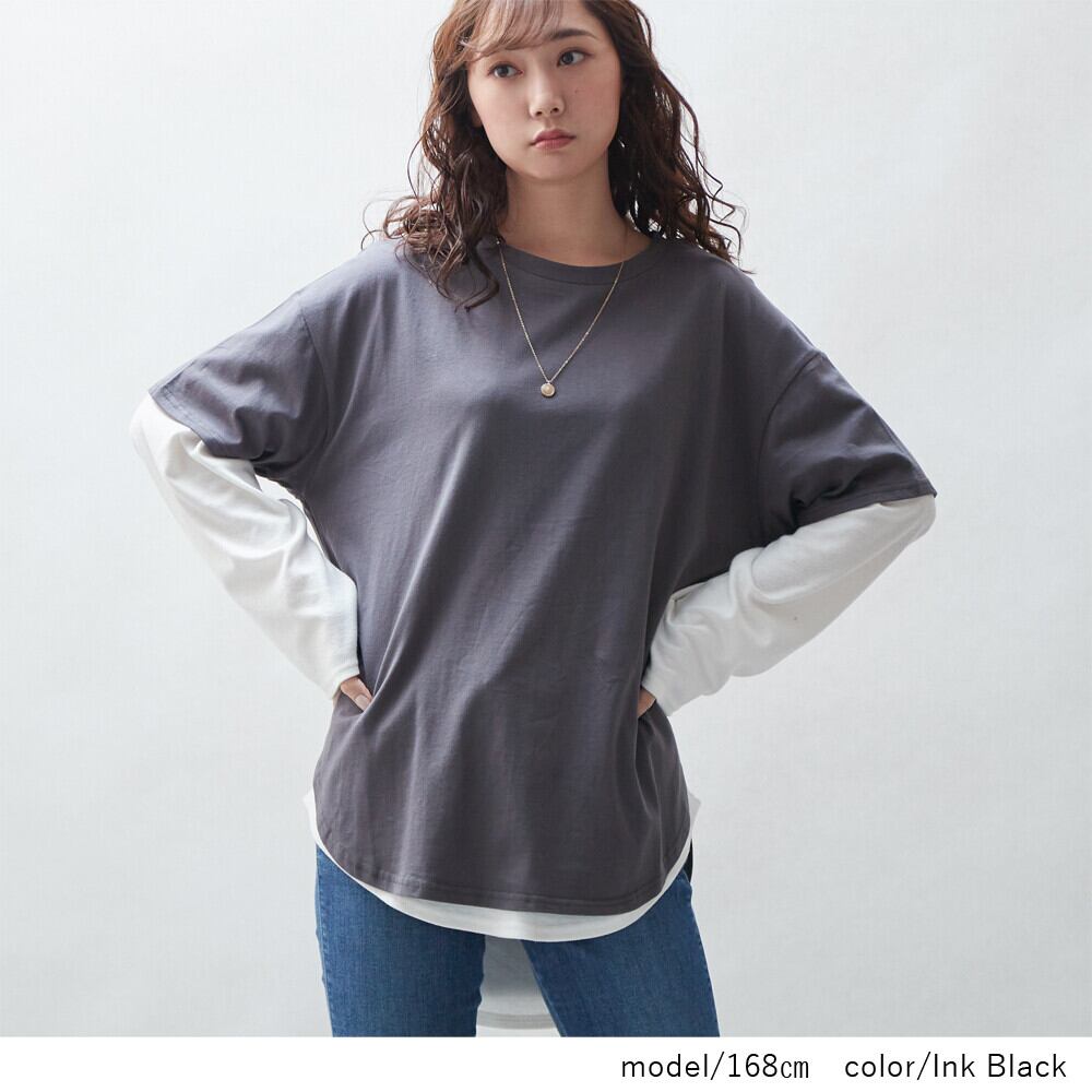 トレンドのラウンドヘムのサイドスリットTシャツ。1枚ではもちろんレイヤードにもおすすめです。