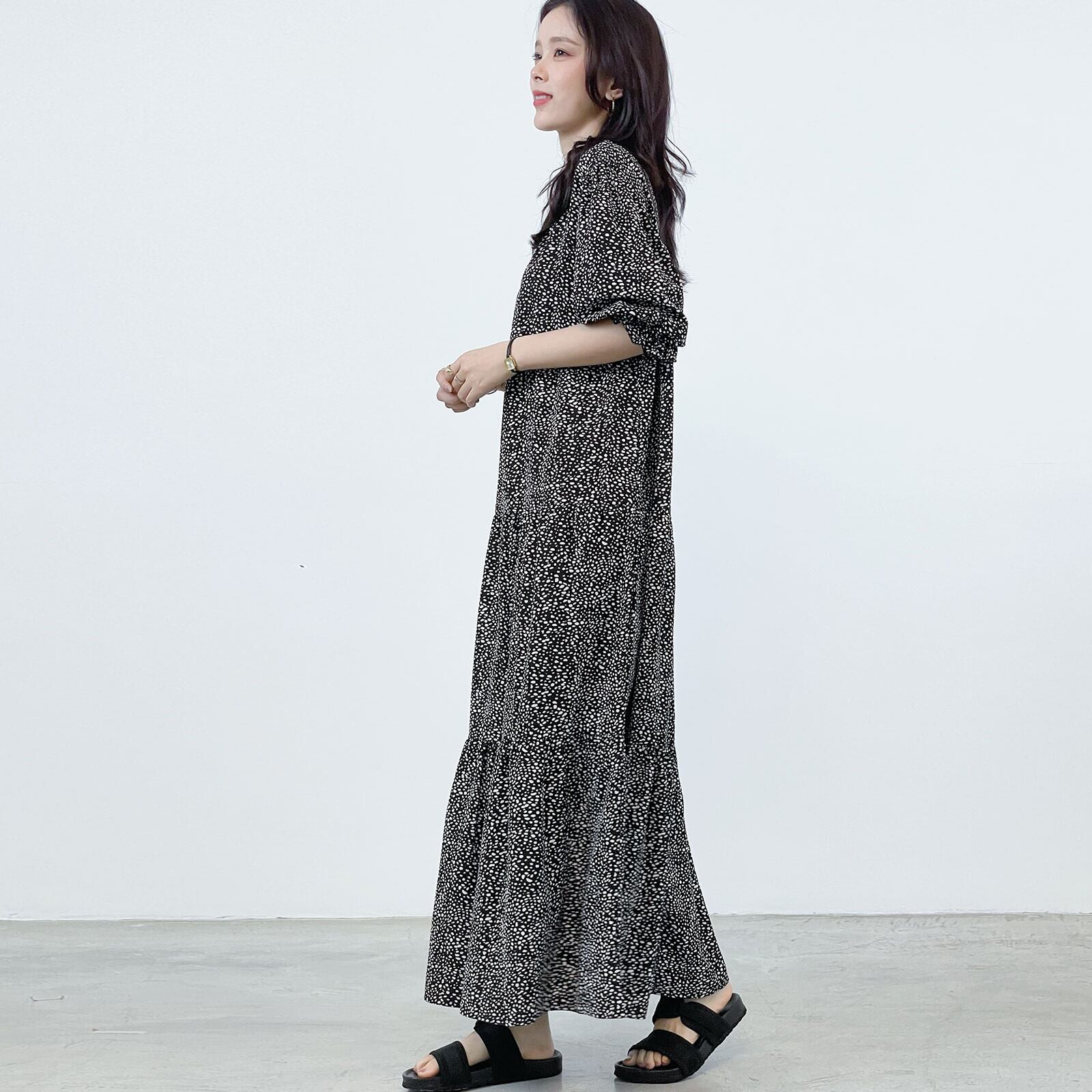 【2021新作】【M〜L】変形小ドットAラインマキシ丈ワンピース(R38-112) EC