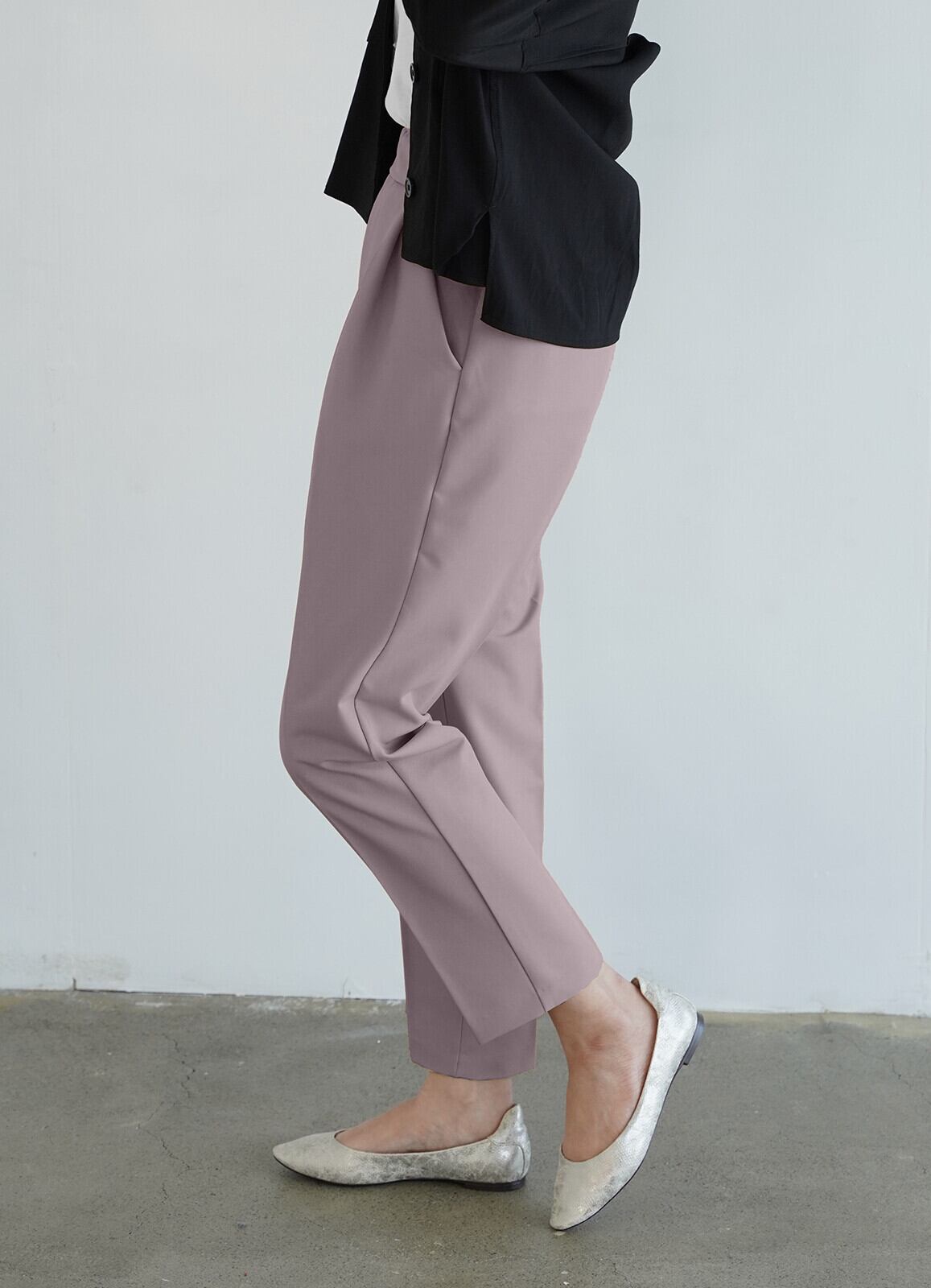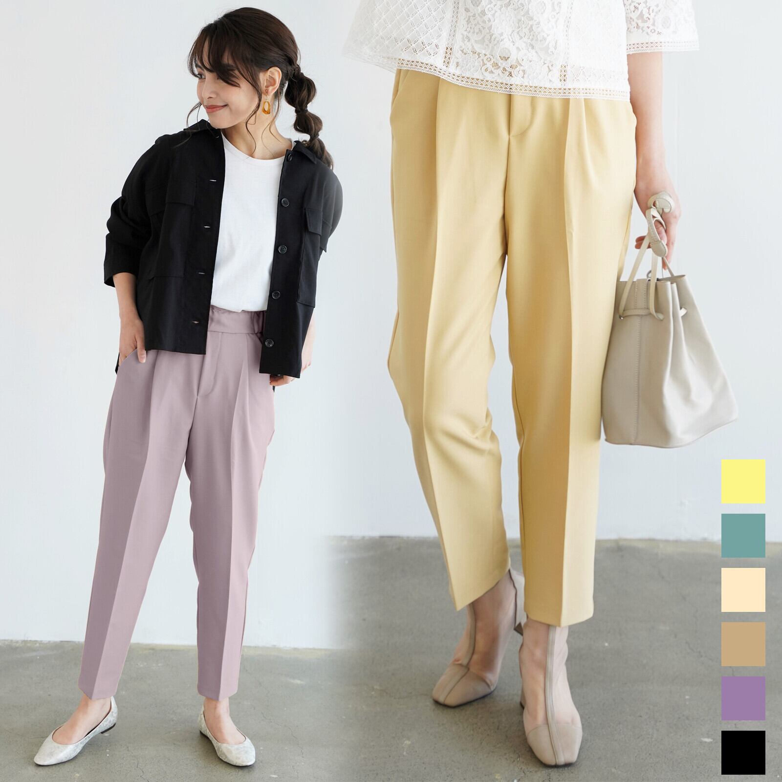 \ スタッフイチオシ☆アイテム /センタープレスで縦ラインを強調!美脚テーパードパンツ■Detail・美脚を叶えるテーパードシルエットとセンタープレス・すっきりと見える裾にかけて細くなるシルエット・ヒップの位置を高く見せるバックのフェイクポケット・ボタンがなく、着脱が楽ちんな後ろゴム仕様・両サイドにポケットあり・きちんと感を演出し手抜きに見えないフェイクのフロントジップ・伸縮性抜群のポリウレタン混素材■Stylingトレンドに左右されないテーパードパンツは合わせるトップスを選ばない優秀アイテム。すっきりした丈感で軽やかな足元を演出します。ヒールでキレイめに、スニーカーでカジュアルに…♪幅広いコーデが楽しめるスタッフおすすめの1本です。普段使いにもお仕事スタイルにも幅広く対応し季節関係なくロングシーズン履けます。