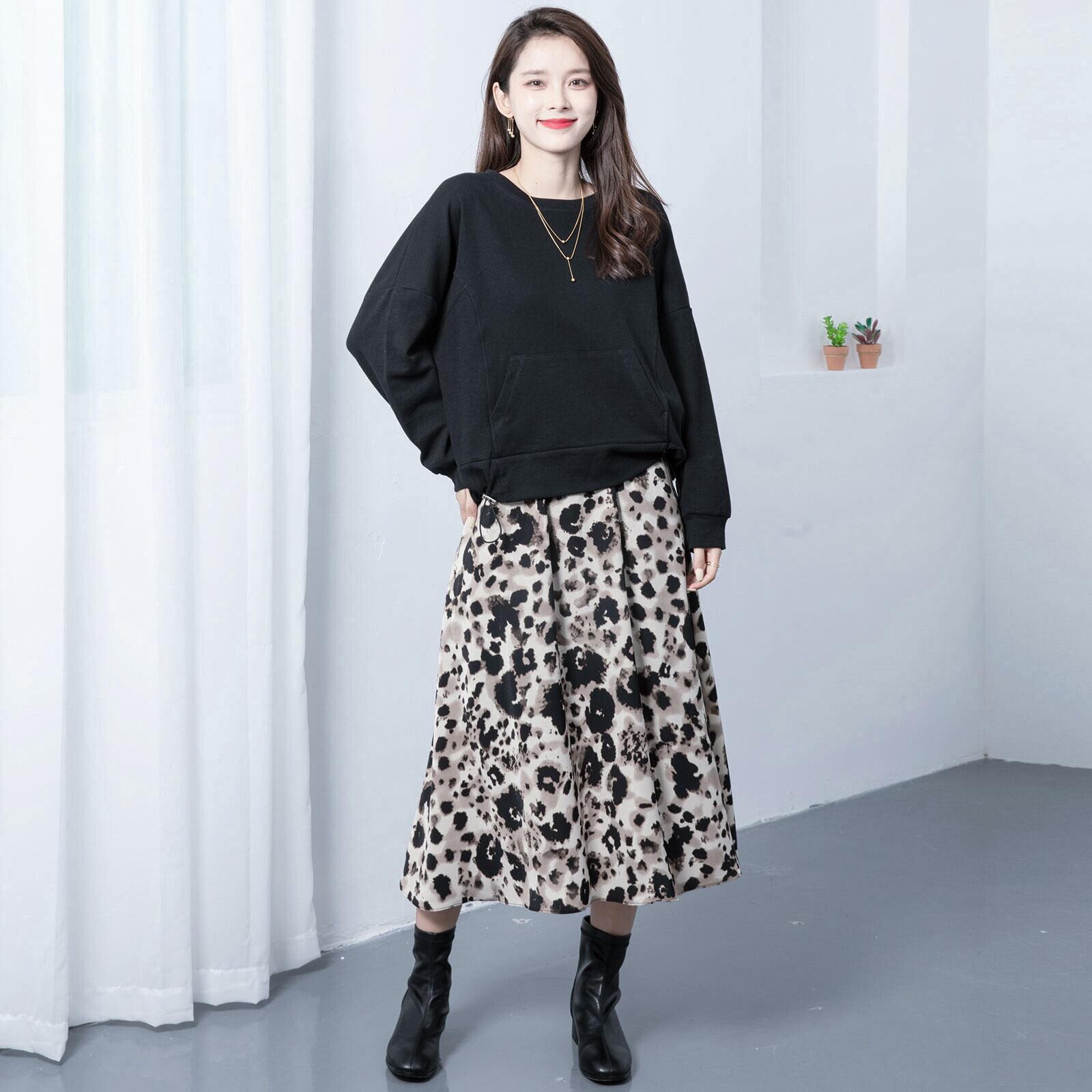 【2021秋冬】【M〜L】ニュアンスレオパードフレアスカート(C34-103) EC