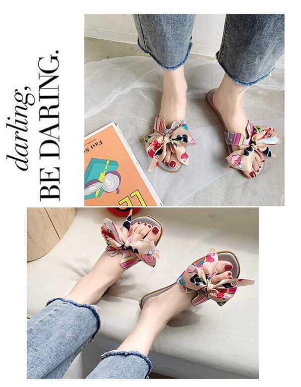 コピー:海外買付 レディース リボン ビーチサンダル 花柄 ローヒール ぺたんこ フラット スリッパ 柔らか